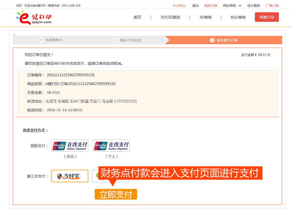- 最新成交 深圳市3D打印订单 138****2618 订单金额¥517.94元 已付款成功