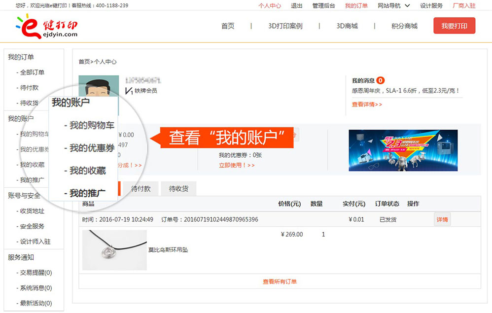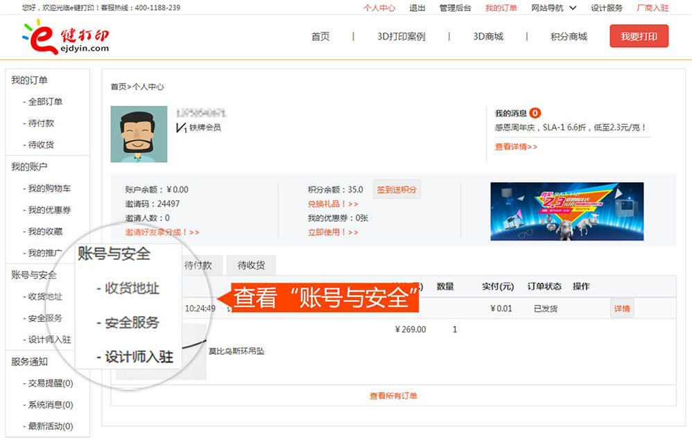 3d打印网站 > 帮助中心 > 个人中心使用流程